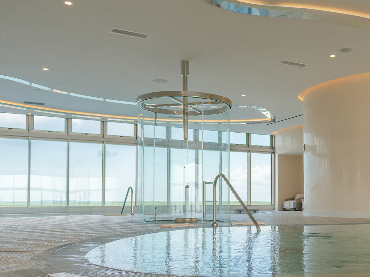 ¡No te saltes el glorioso circuito de hidroterapia! Asegúrese de pasar algún tiempo en las tumbonas para disfrutar del impresionante panorama. ¿Quieres ver el atardecer desde el cuarto piso? ¡No hay problema! Planifica una sesión de tarde y contempla las aguas cristalinas sobre la arena blanca del Caribe. Al mismo tiempo, observa la puesta de sol en el horizonte mientras alcanzas un estado de absoluta felicidad y relajación.